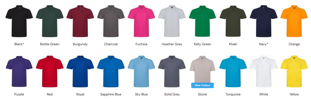 Garment colours can be mixed and matched too – view the full colour chart in the product images.